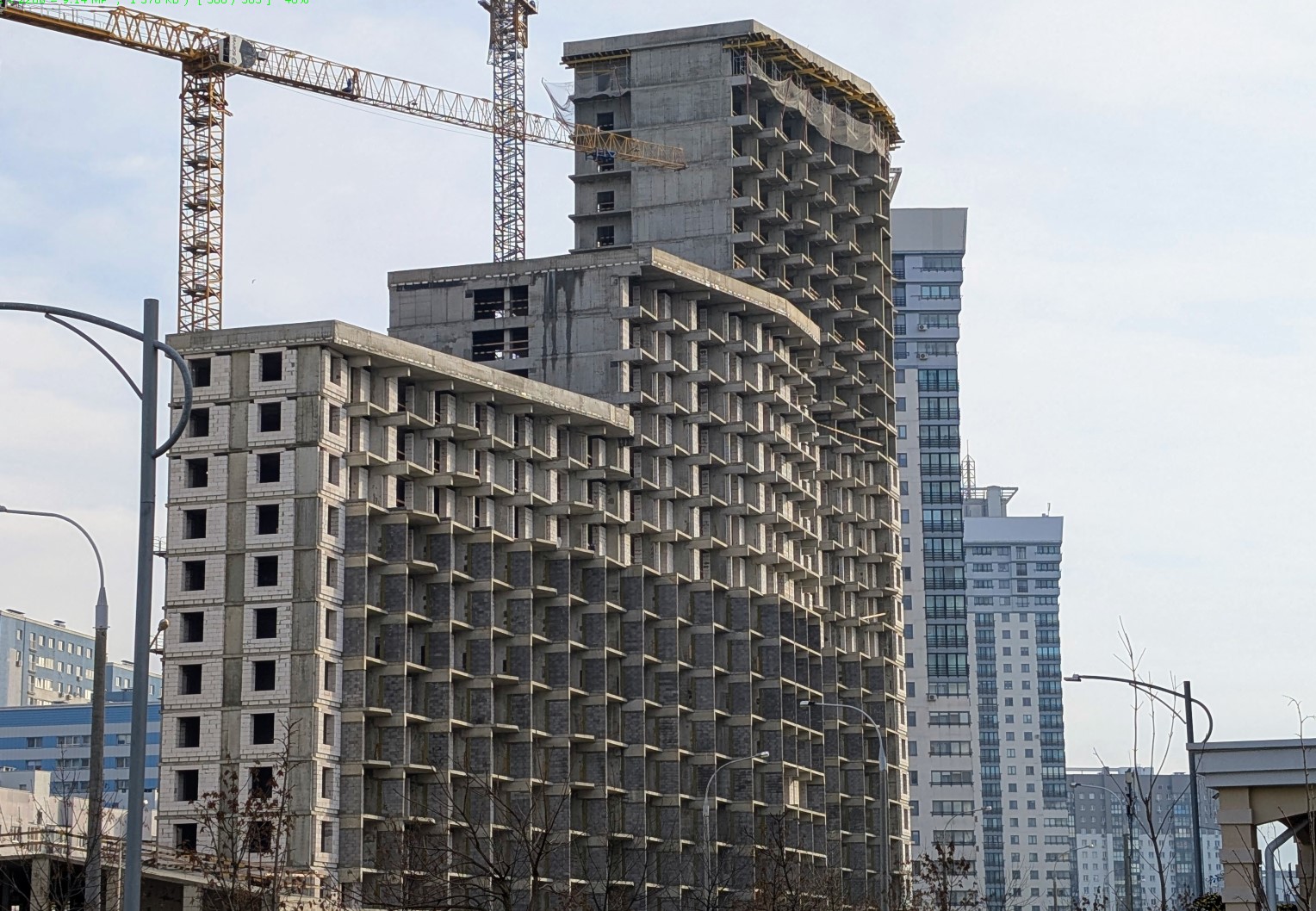 - Наружные стены: Активно ведется заполнение фасадов газосиликатными блоками. Работы идут высокими темпами, охватывая уровни с 15-го по 16-й этажи.